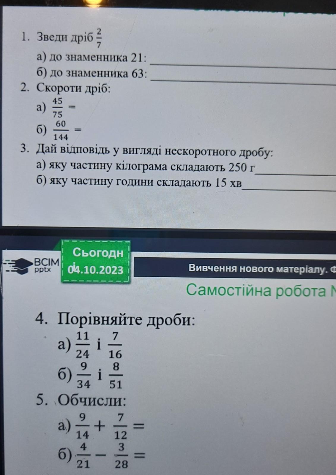4. Щоб порівняти дроби треба звести їх до спільного знаменника
