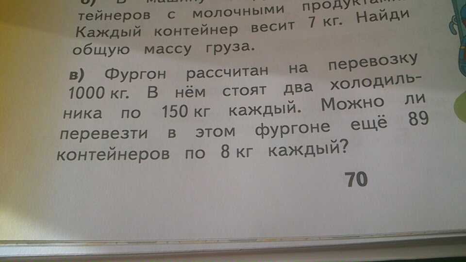 3)712+300=1012(кг)-перевозка 2-ух холодильников и 8-ми контейнеров.