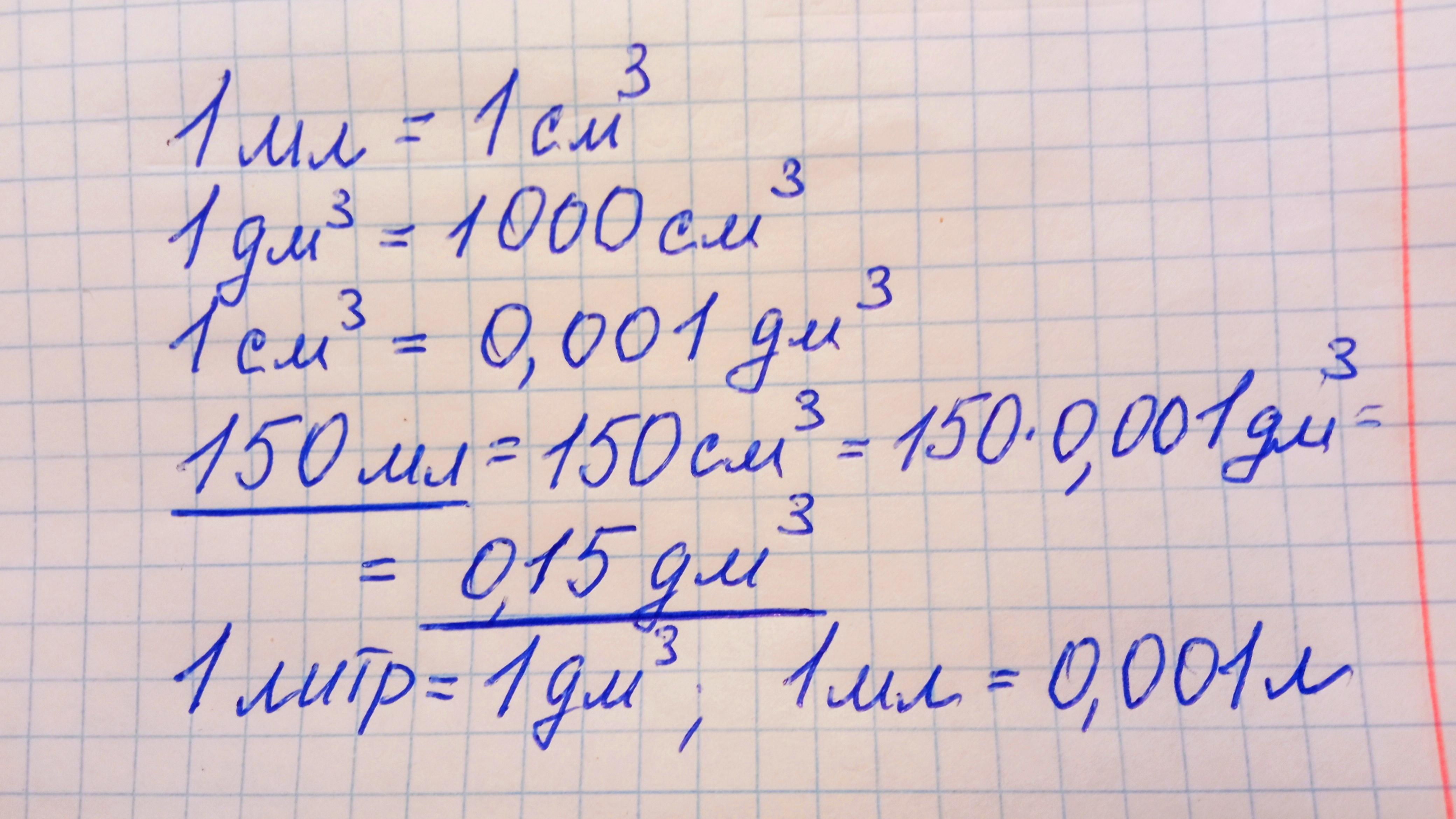 Таким чином, 150 мл дорівнює 0.15 дм³.