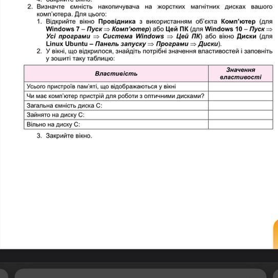 ДОПОМОЖІТЬ 2. Визначте ємність накопичувача на жорстких магнітних дисках вашого