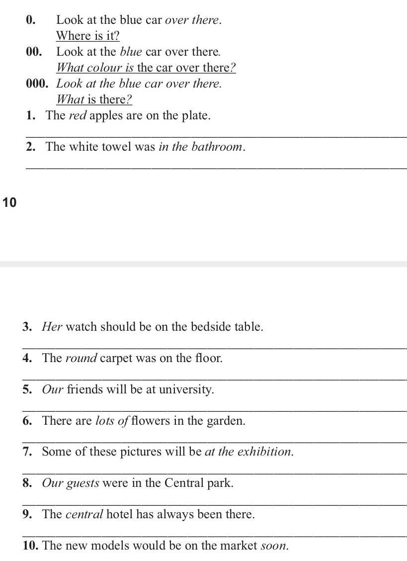 Work in pairs. Transform the sentences below. There are three examples at the beginning (0), (00) and (000).
