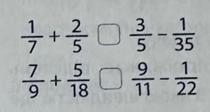 1) 1/7 + 2/5 < 3/5 - 1/35; 2) 7/9 + 5/18 > 9/11 - 1/22 :)))))