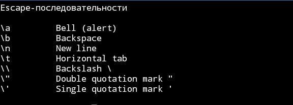 Написати програму, яка виводить у консоль таблицю Escape-послідовностей: