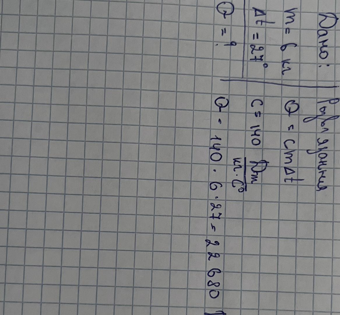 Q = cm(t2 - t1) + λm = 140 * 6(327 - 27) + 25000 * 6 = 402000 Дж
