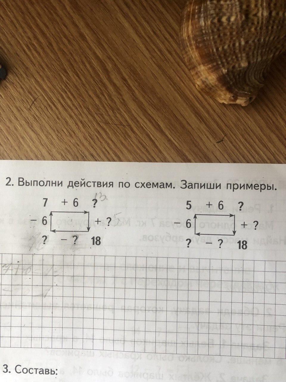 Ответ: 1) 7+6=13 13+5=18 18-5=13 13-6=7