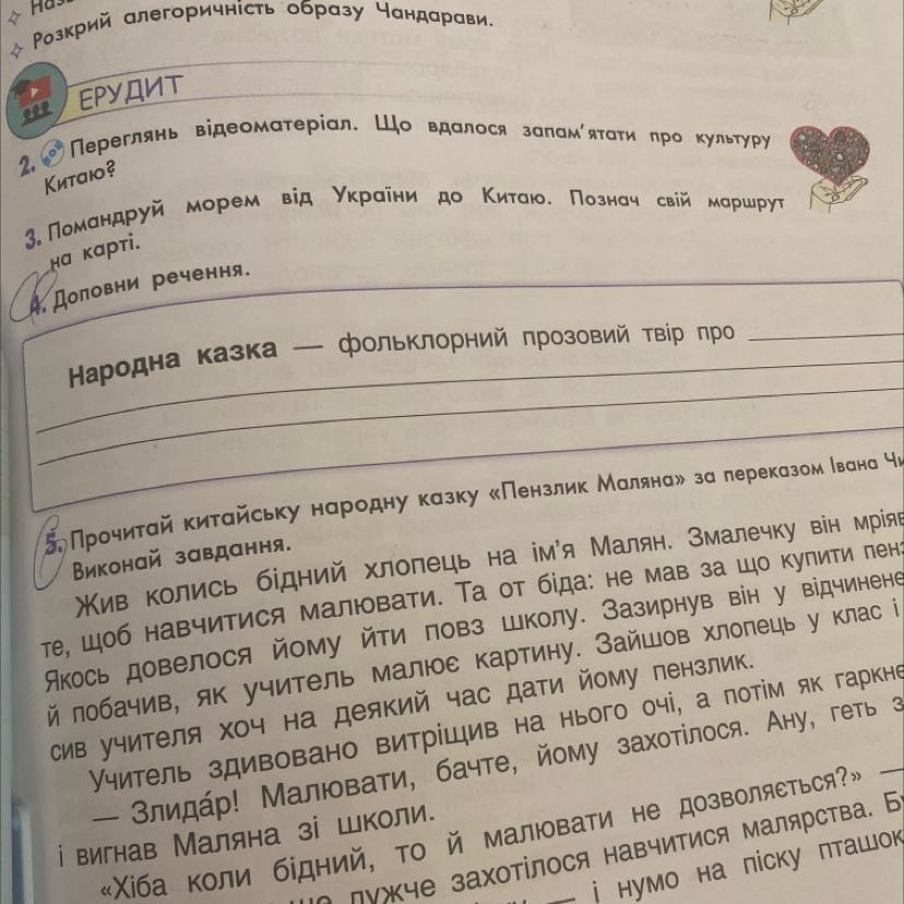 9.Народна казка -…(фольклорний розповідний твір про вигадані, а часто і фантастичні події, складений народом).