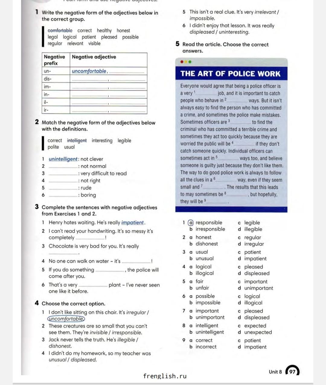6. I didn't enjoy that lesson. It was really uninteresting.1. a- responsible
