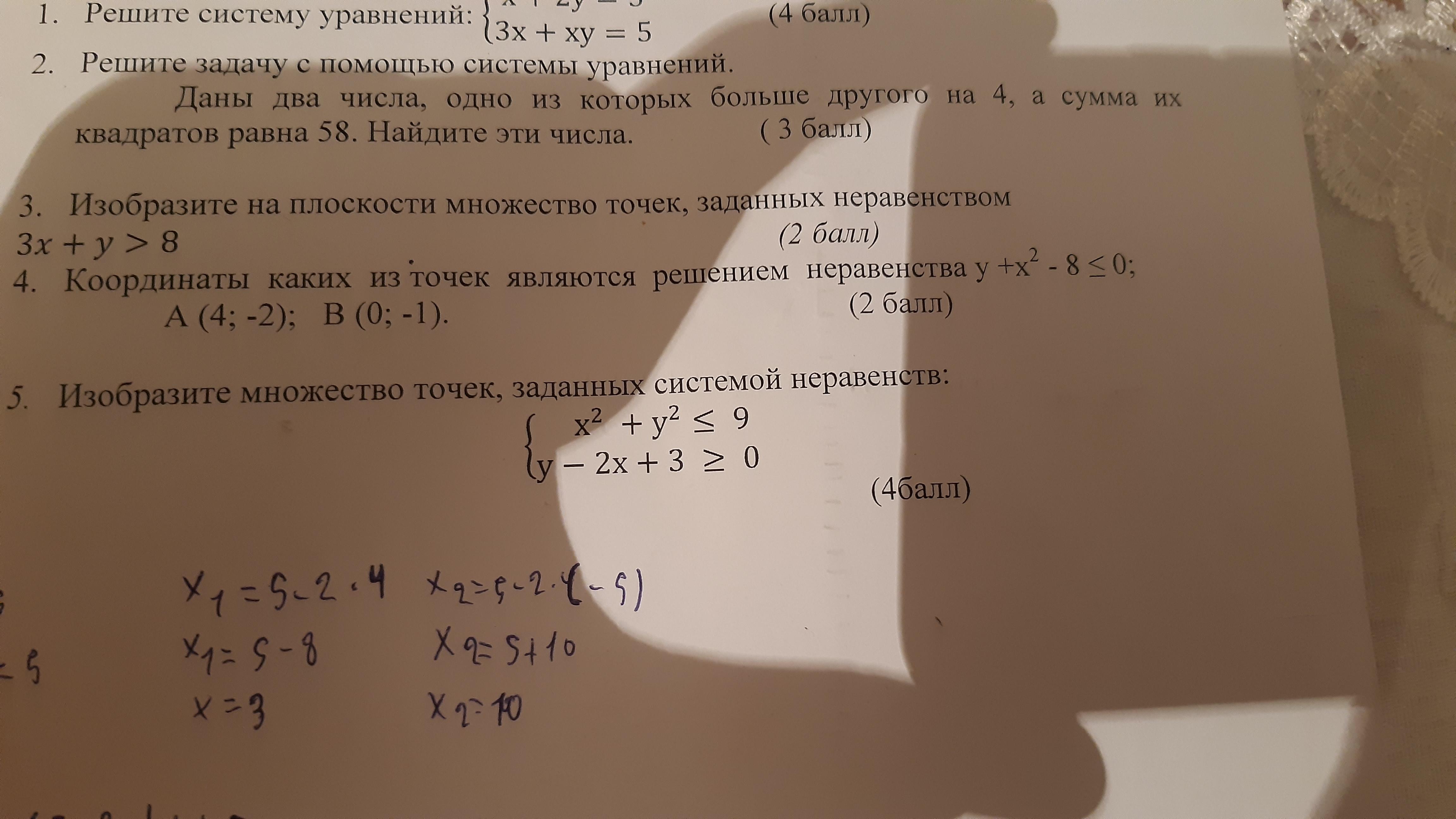 4.Координаты каких из точек являются решением неравенства y+x2-8меньше или равно 0