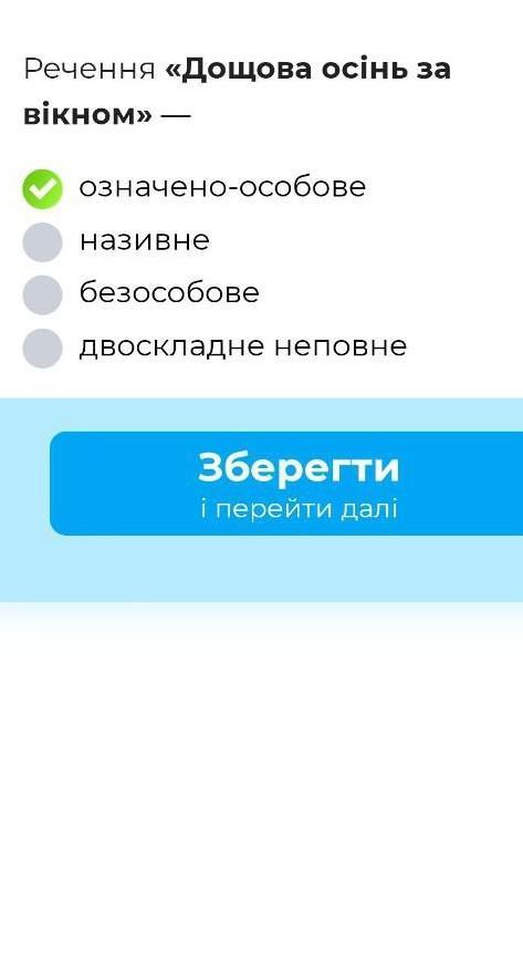 Речення «Дощова осінь за вікном» - означено-особове називне безособове двоскладне неповне