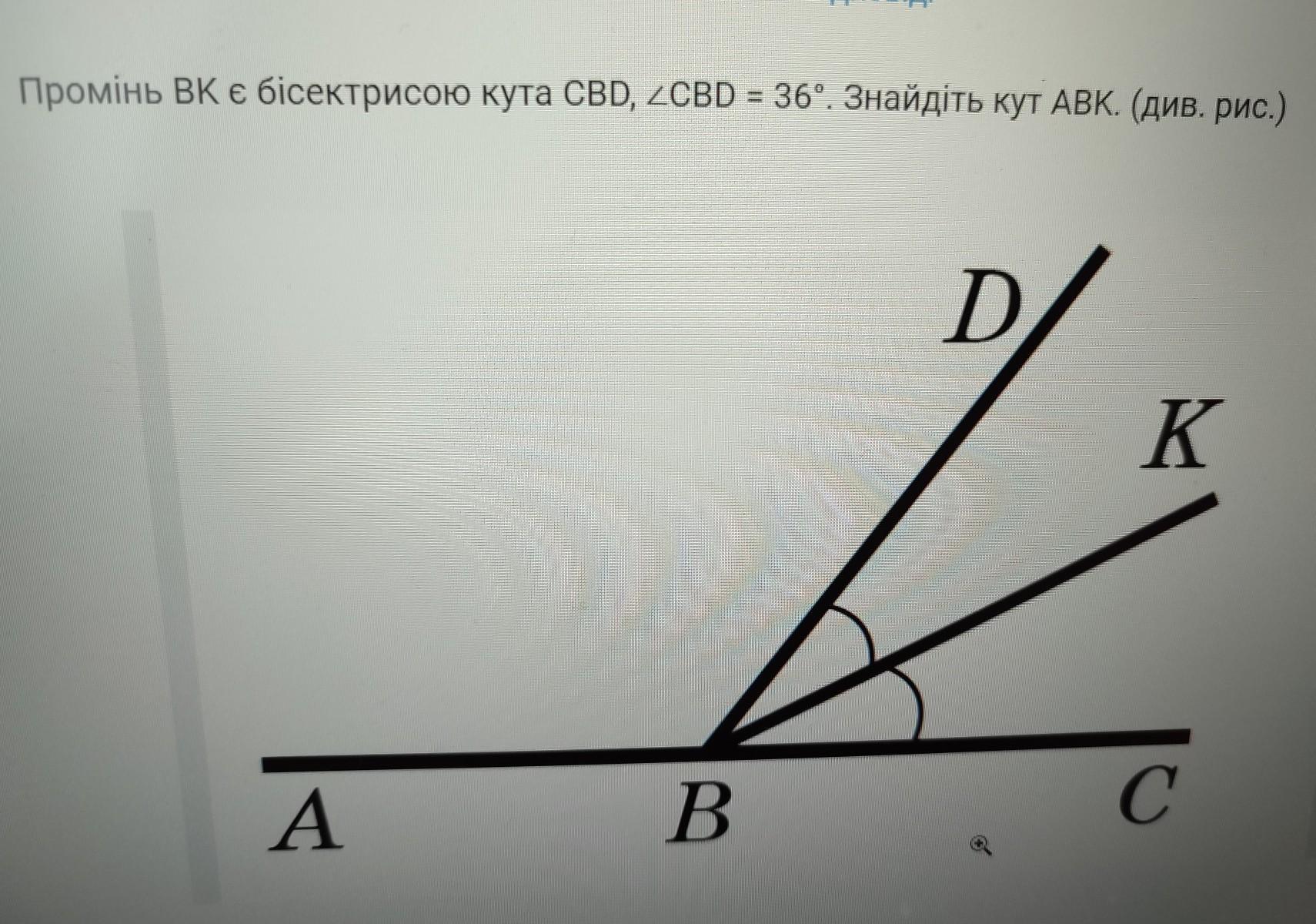 *малюєш малюнок* Дано: кут СВД, кут АВК. СВД = 36⁰