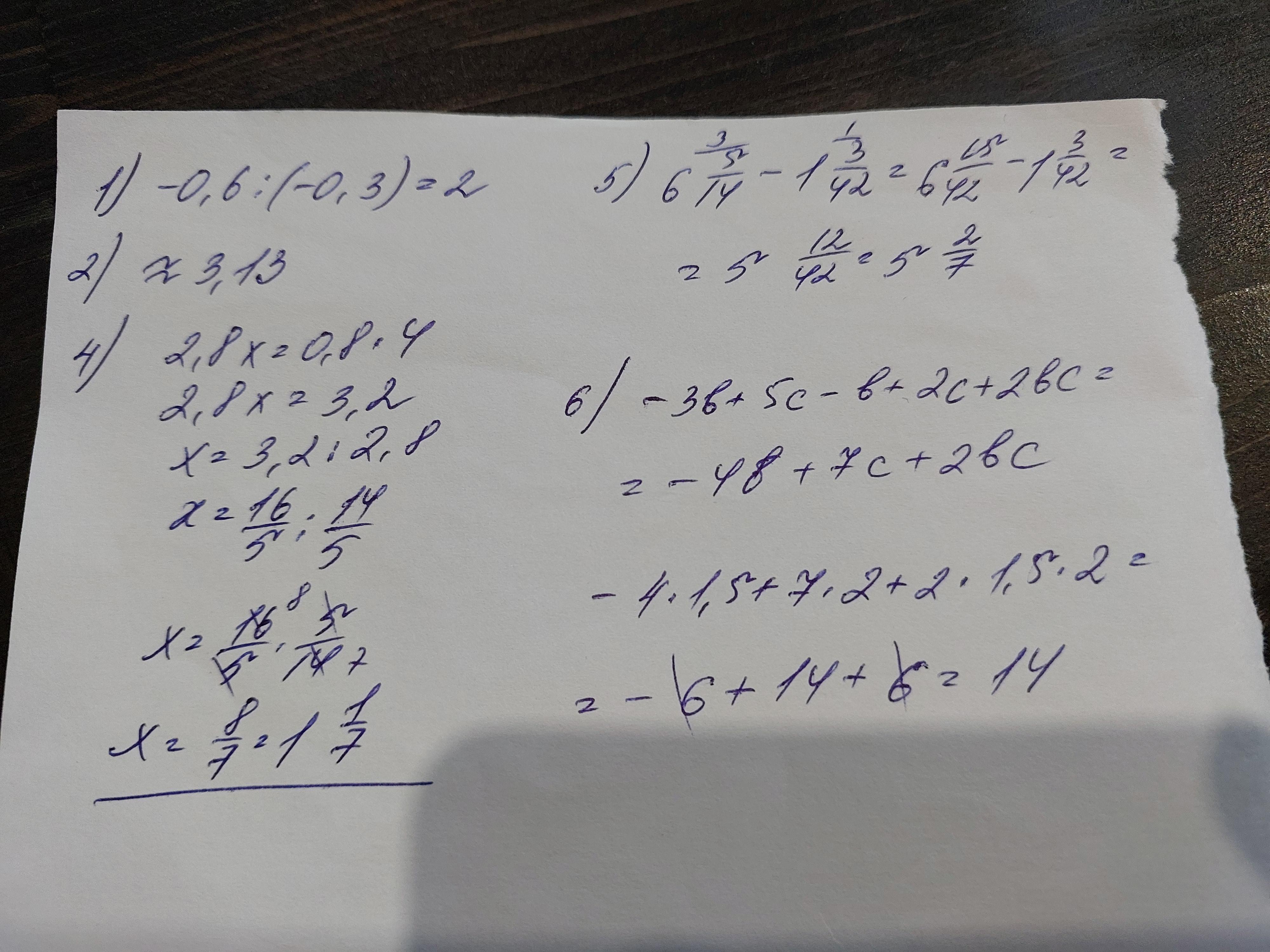 6) найти значение выражения -3b+5c-b+2c+2b×c. b=1,5 c=2