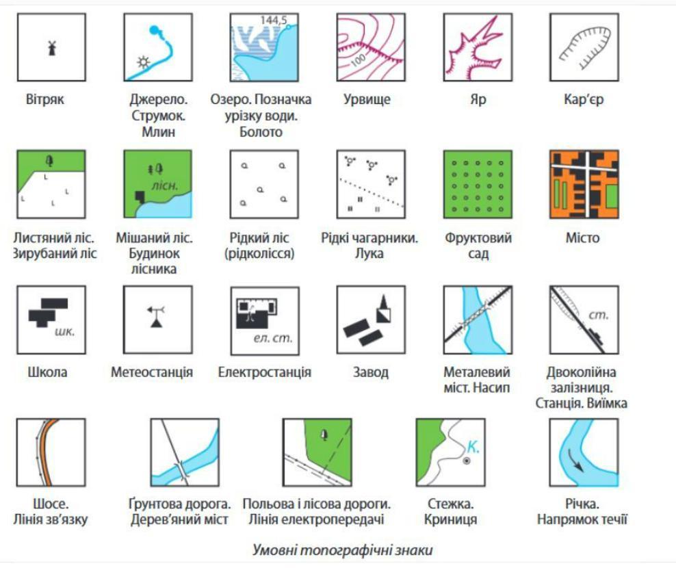 3. За допомогою топографічної карти та умовних позначень скласти детальний маршрут подорожі з міста Снов до села Воронове, описуючи місцевість за допомогою умовних знаків.