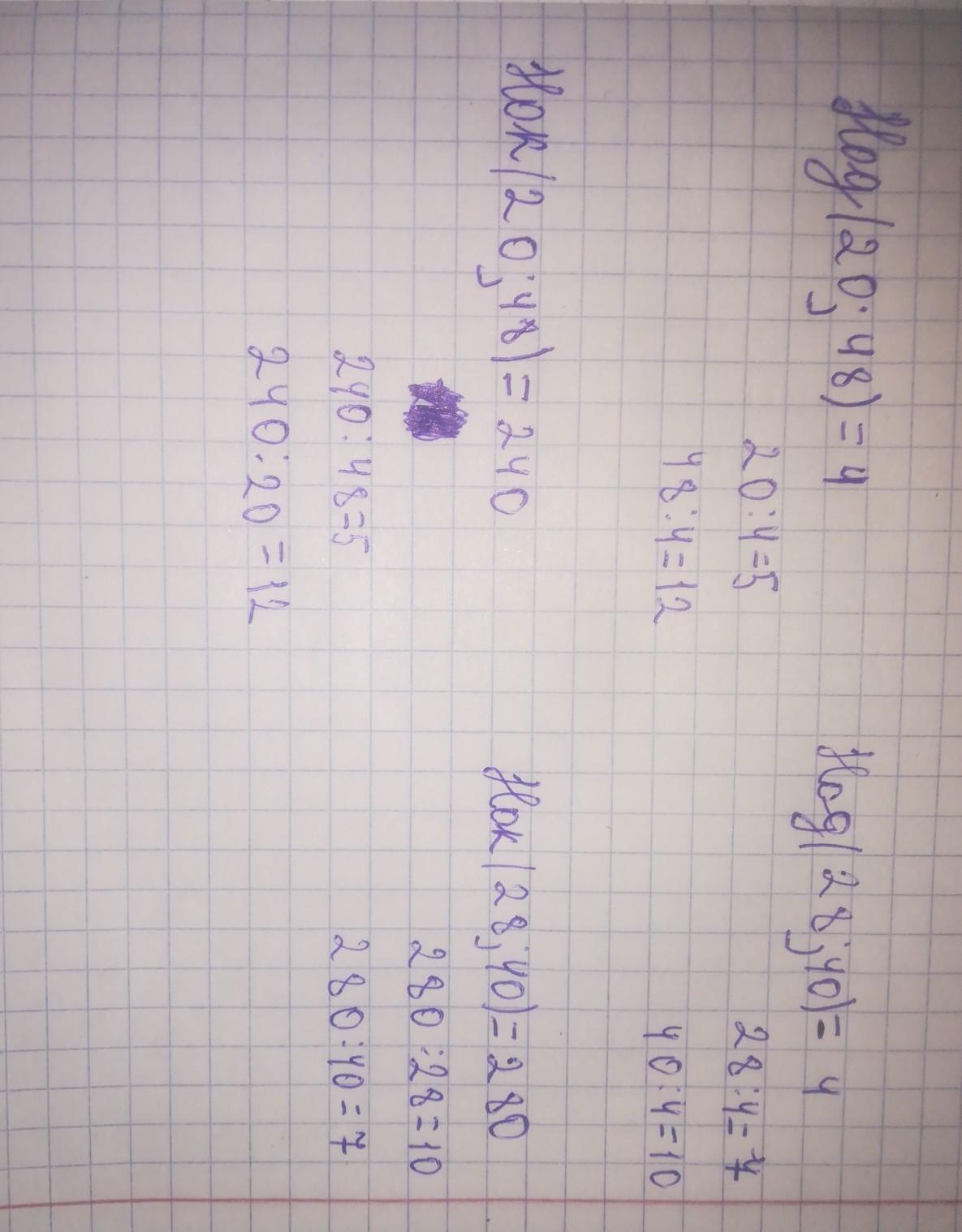 Найдите НОД ( 20; 48) и НОД (28; 40). Сравните их.