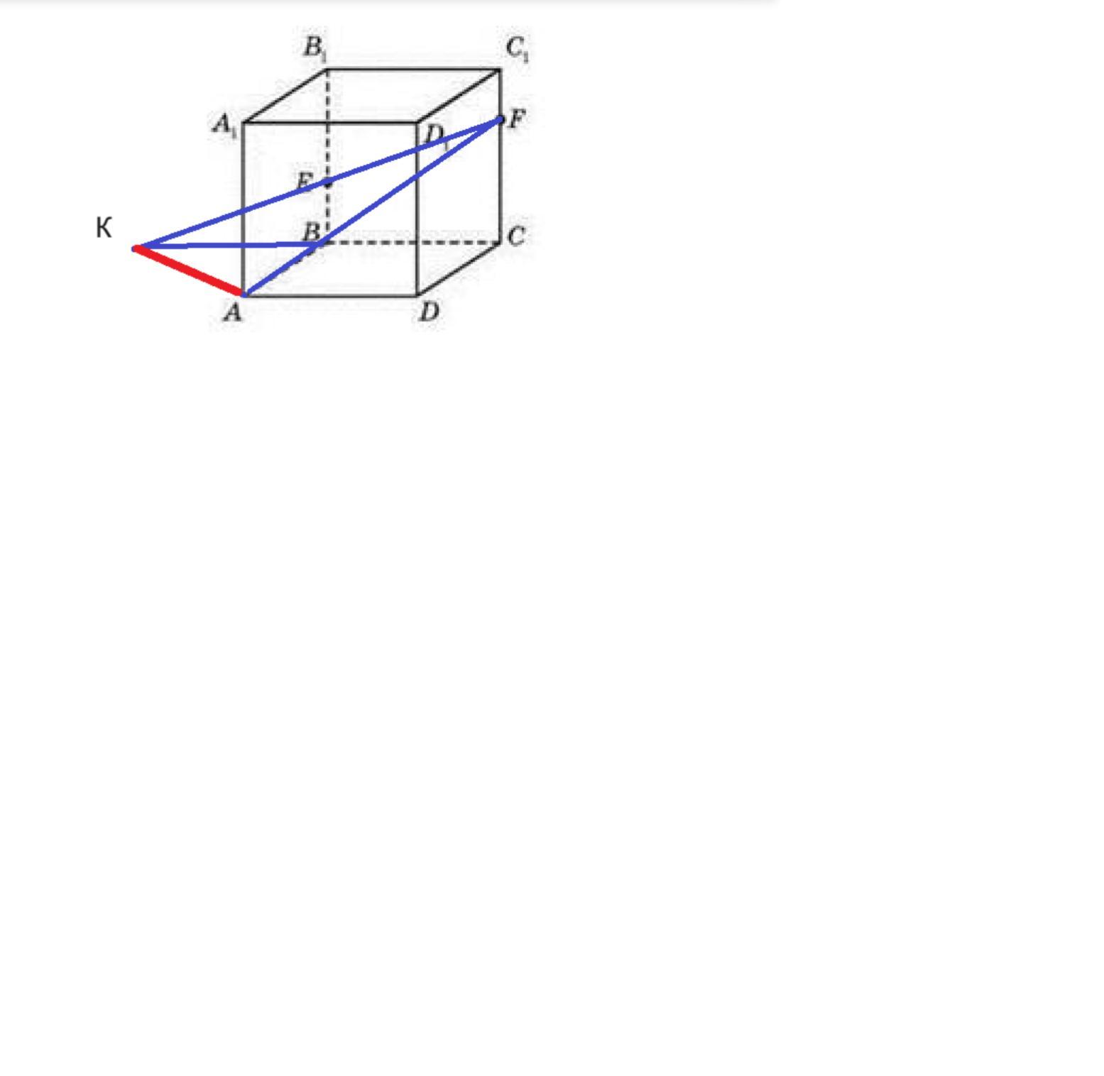 На рисунку зображено куб ABCDA1B1C1D1, E ∈ BB1, F ∈ CC1. побудуйте лінію перетину площин AEF і ABC.
