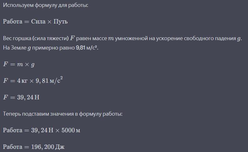 Алекс прлшел расстояние в 5км , неся на голове горшок весом 4кг. Работа выполненная Алексом составлыет 50б