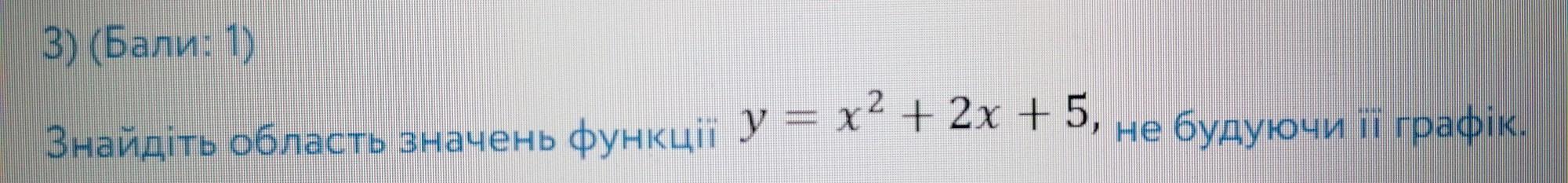 Знайдіть область значень функції y=x^2+2x+5, не будуючи її графік.