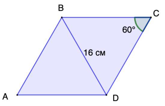 ∠С = 60°; BD = 16 см.