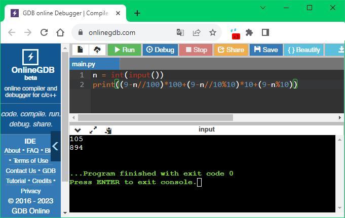 print((9-n//100)*100+(9-n//10%10)*10+(9-n%10))