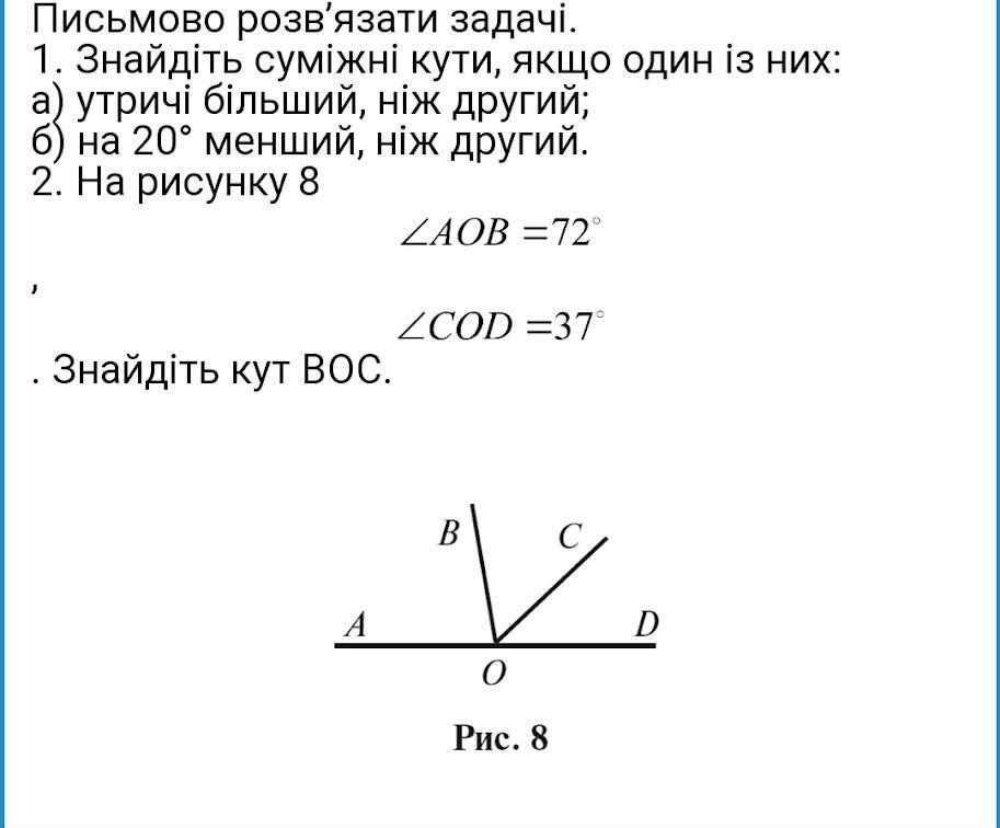 б) 180 = x + x-20 2x = 200 x=100, то <1 = 100, <2 = 80