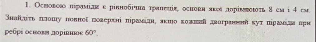Площа повної поверхні піраміди дорівнює 120√2см²