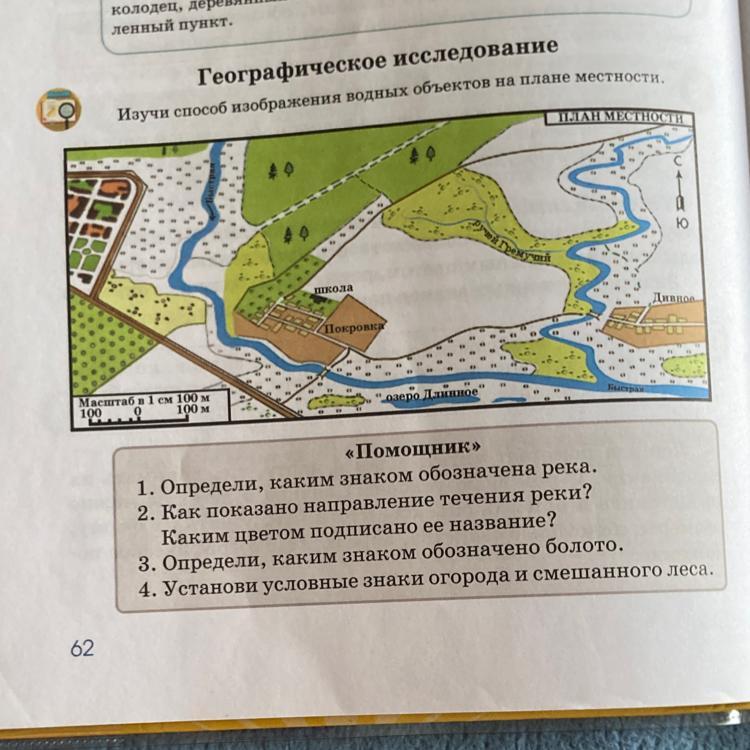 Изучи способ изображения водных объектов на плане местности.