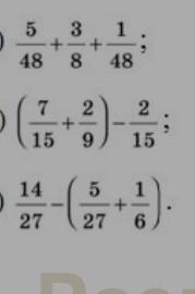 1) 5/48 + 3/8 + 1/48 = 5+1/48 + 3/8 = 6/48 + 3/8 = 1/8 +3/8 = 4/8 = 1/2