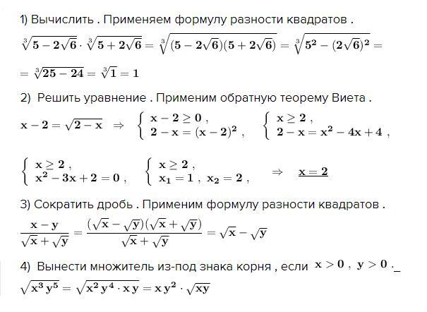 б) Множество значений квадратного корня неотрицательно, значит левая часть выражения (равная квадратному корню) должна быть неотрицательной - то есть x-2≥0, значит x≥2