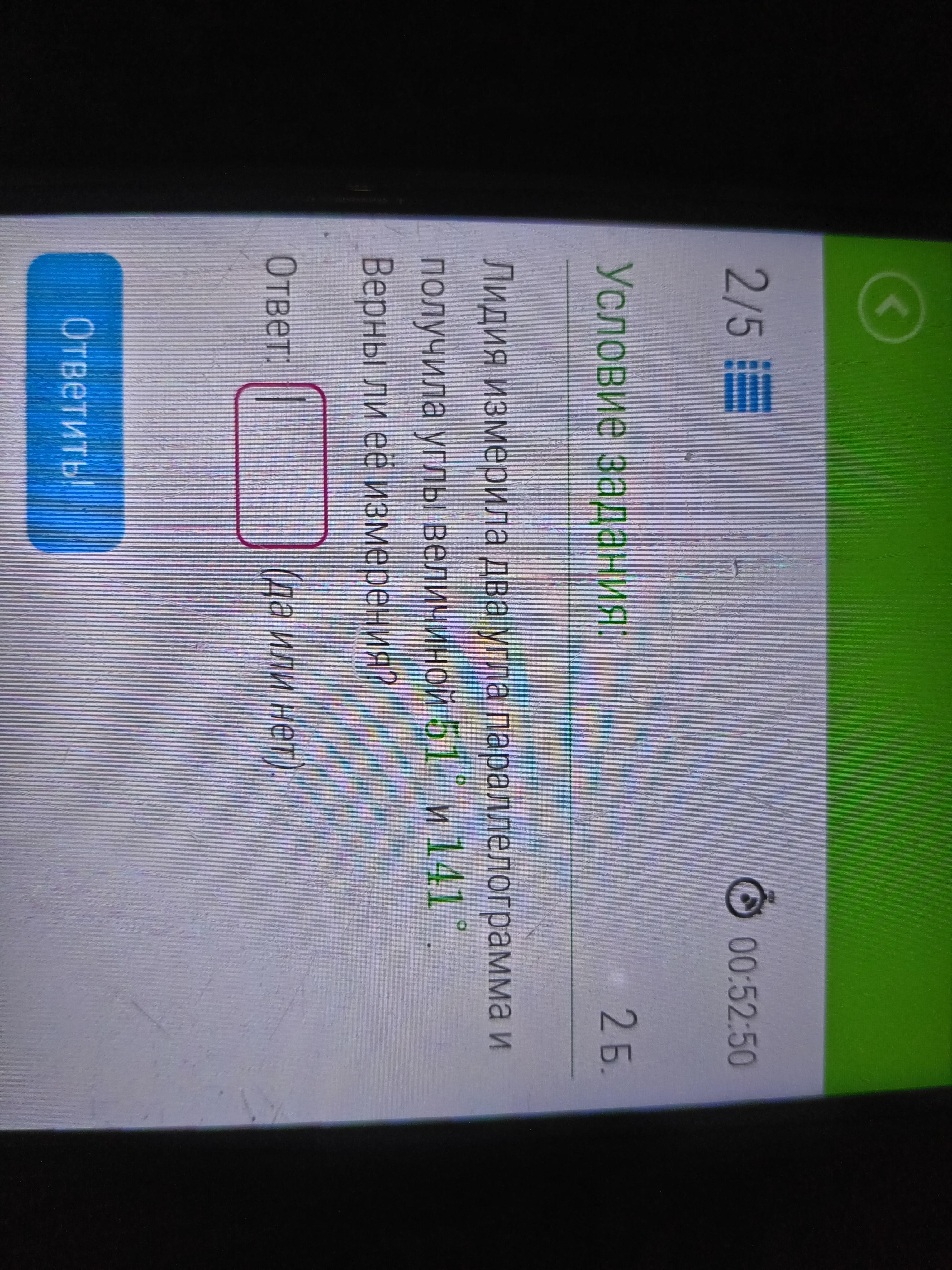 сума кутів паралелограма 360* (141* + 51* + 51* + 141* = 384*)