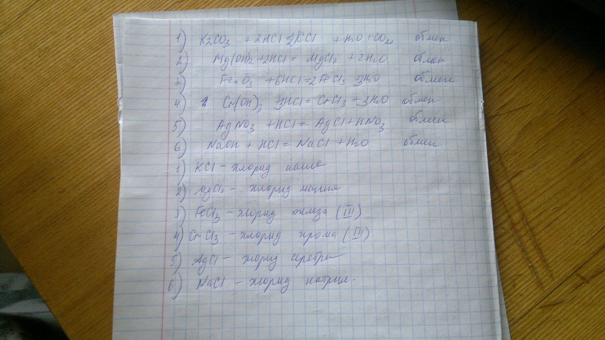 с кем реагирует соляная кислота K2CO3, H2SiO3, Mg(OH)2, Fe2O3, Cu, AiCi3, Na2SO4, Cr(OH)3, SO2, Ba(NO3)2, P2O5, AgNO3, SiO2, NaOH. Запишите уравнения, Укажите тип каждой реакции. Назовите соли .