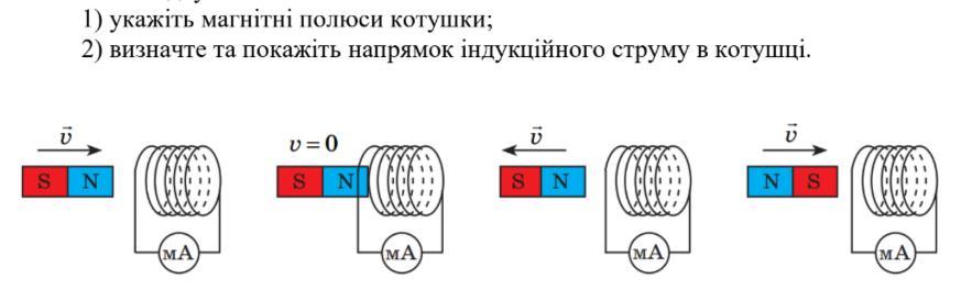 2) визначте та покажіть напрямок індукційного струму в котушці.
