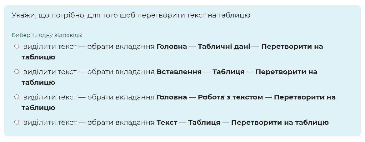 2.Виділити текст - обрати вкладання Вставлення - Таблиця-Перетворити на таблицю