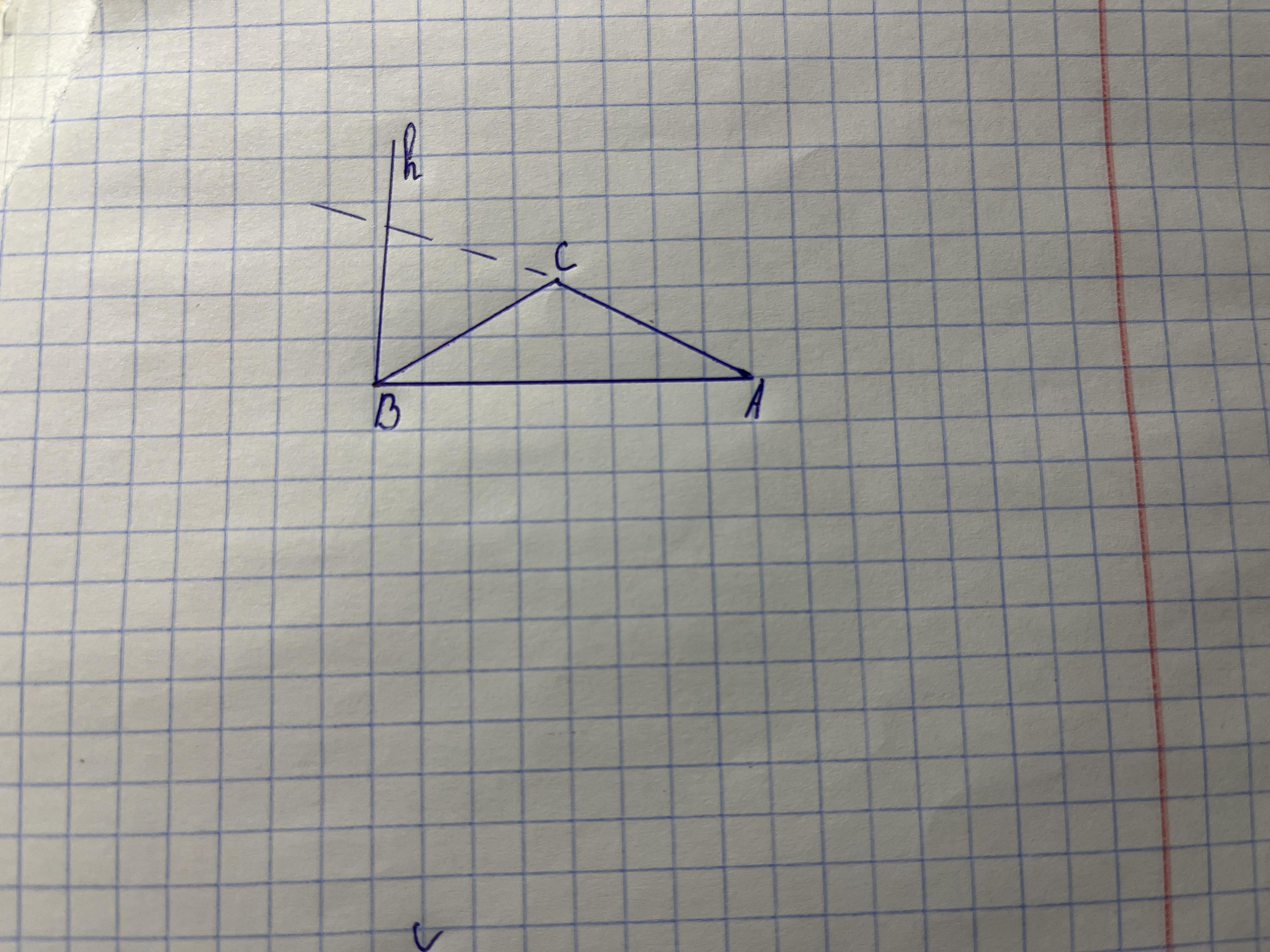 Строим треугольник АВС, продлеваем сторону АС и восстанавливаем к ней перпендикуляр из точки В.