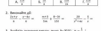 2. Виконайте дії: 2x+y у-4x 6 6 S m+3 5m + S 8-3t 15t 2b 20 32+45 3. Знайдіть значення в b=2015 11 SI5