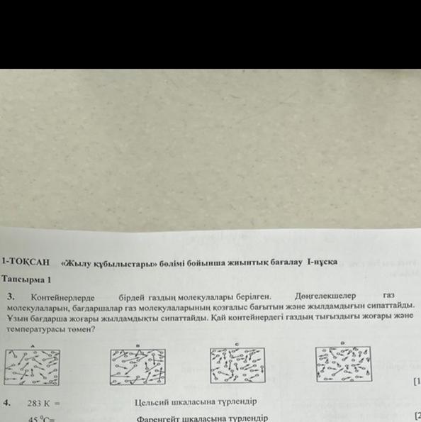 Ұзын багдарша жоғары жылдамдыкты сипаттайды. Қай контейнердегі газдын тыгыздыгы жогары және