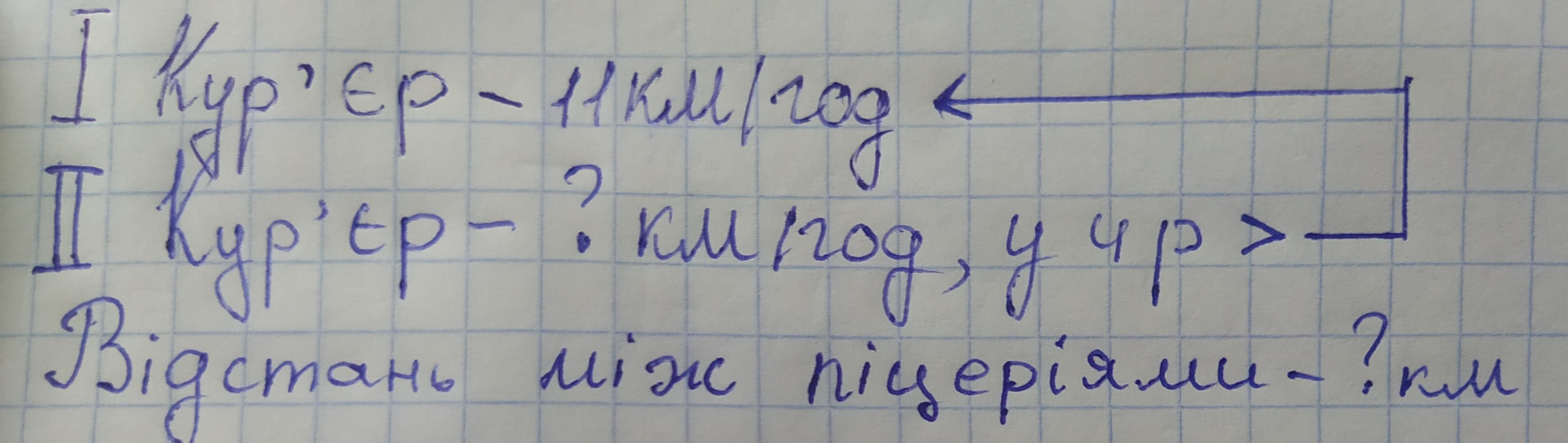 2) 44+11=55(км/год) - швидкість зближення кур'єрів;