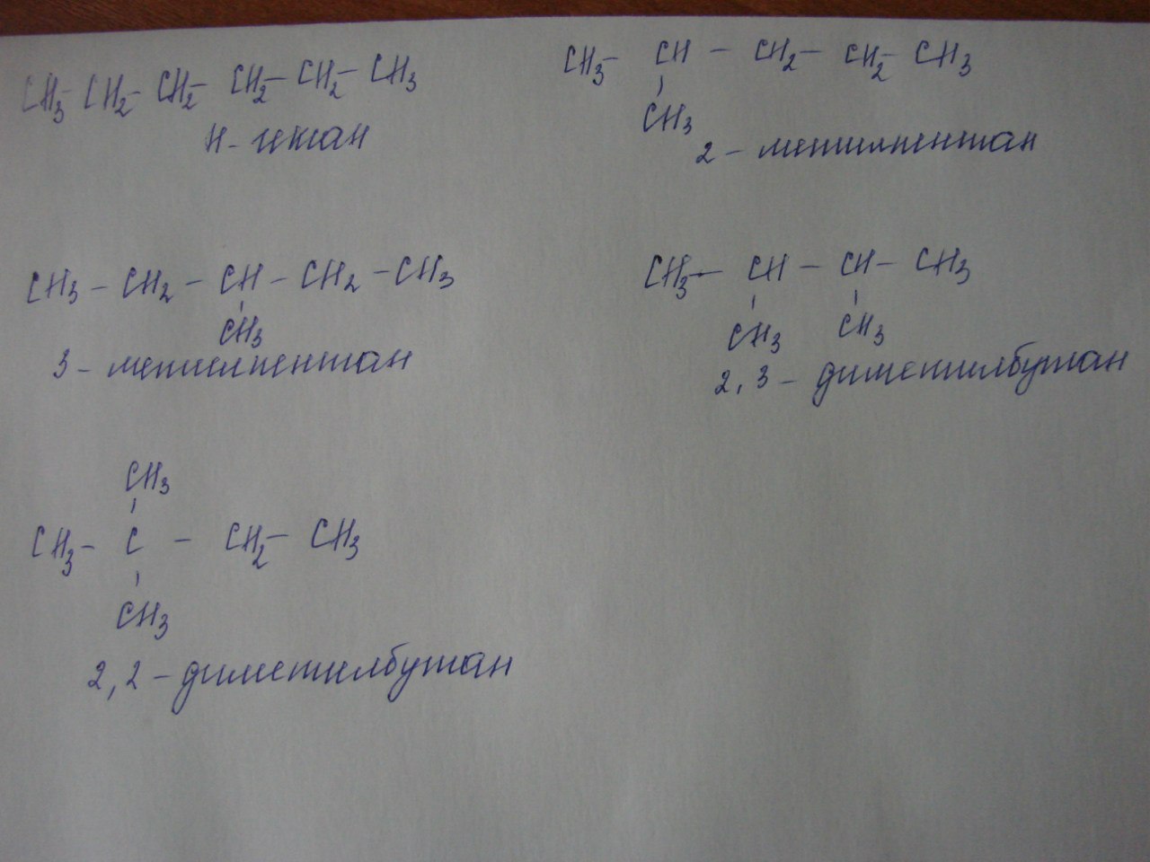 н-гексан, 2-метилпентан, 3-метилпентан, 2,3-диметилбутан, 2,2-диметилбутан