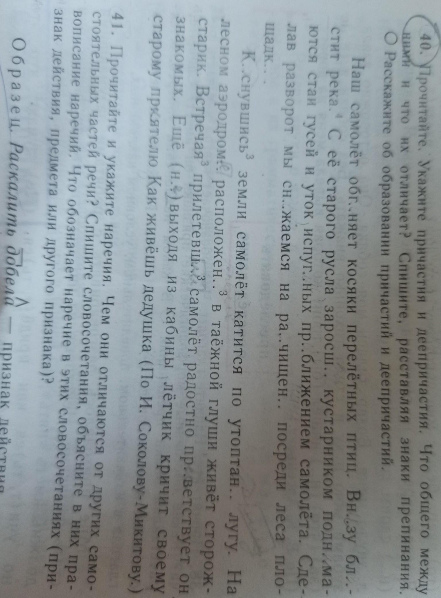 прочитайте укажите причастия и деепричастия.Что общего между ними и что их отличает?
