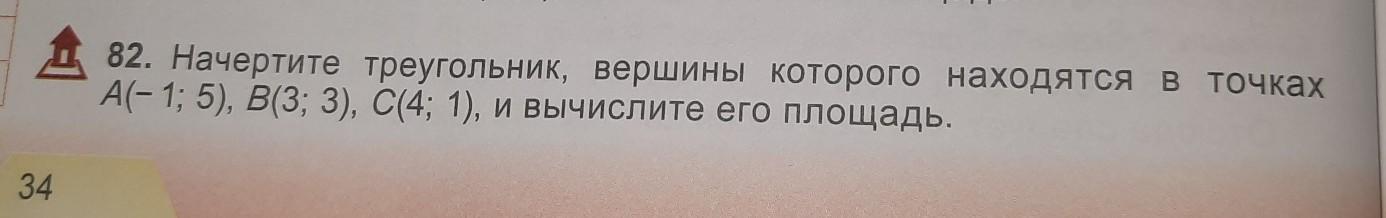 дь. Д 82. Начертите треугольник, вершины которого находятся в точках A(-1; 5), B(3; 3), С(4; 1), и вычислите его площадь. 84