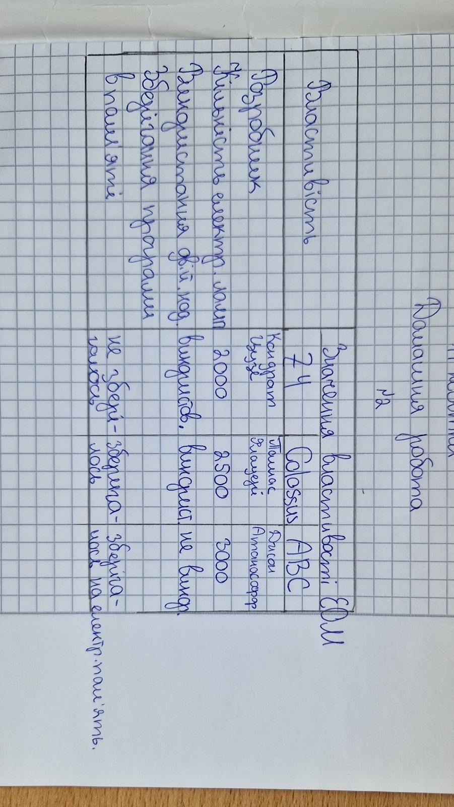 Здійснить в Інтернеті або друкованих ресурсах пошук відомостей про перші електроні обчислювальні машини та заповніть порівняльну таблицю