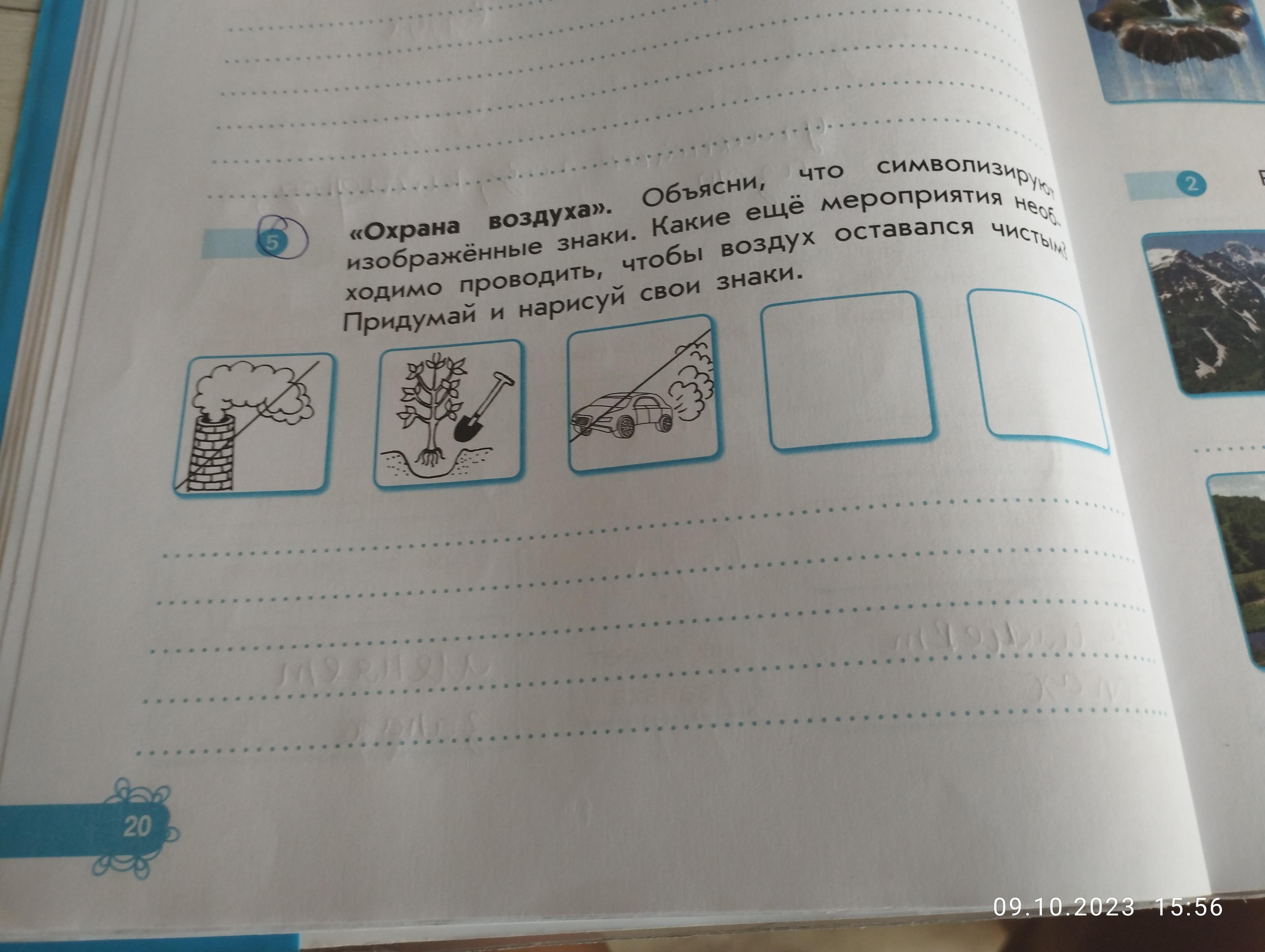 <<Охрана воздуха>> Объясни, что символизируют изображённые знаки. Какие ещё мероприятия необходимо проводить, чтобы воздух оставался чистым?