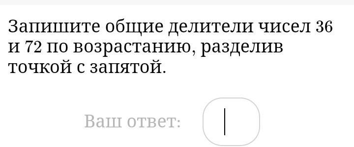 запишите общие делители чисел 36 и 72 по возростанию,разделив точкой с запятой