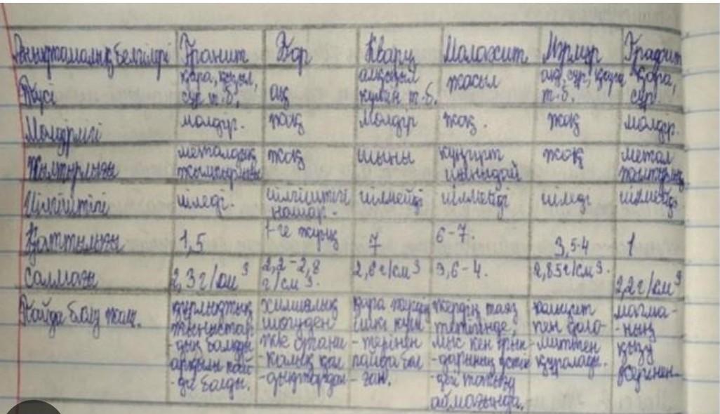 Кесте де берілген минералдардын әзiндiк анықтамалық