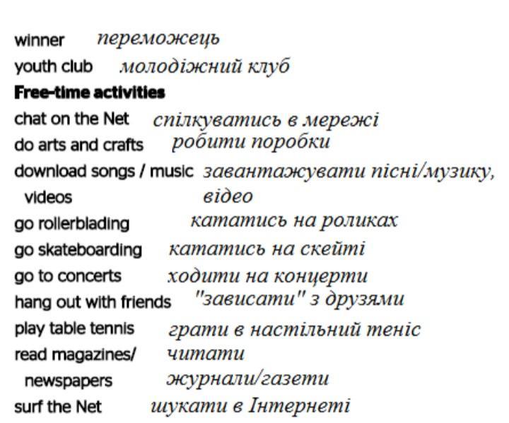 Напишіть 6 реченнь, вживаючи слова (вклаений файл) + слова like, love, enjoy, hate, can't stand, want/would like (на вибір)
