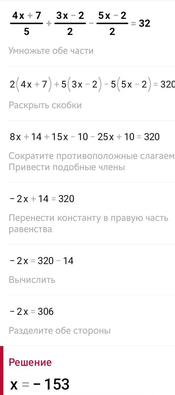 2(4x+7)+5(3x-2)-5 (5x-2)=320