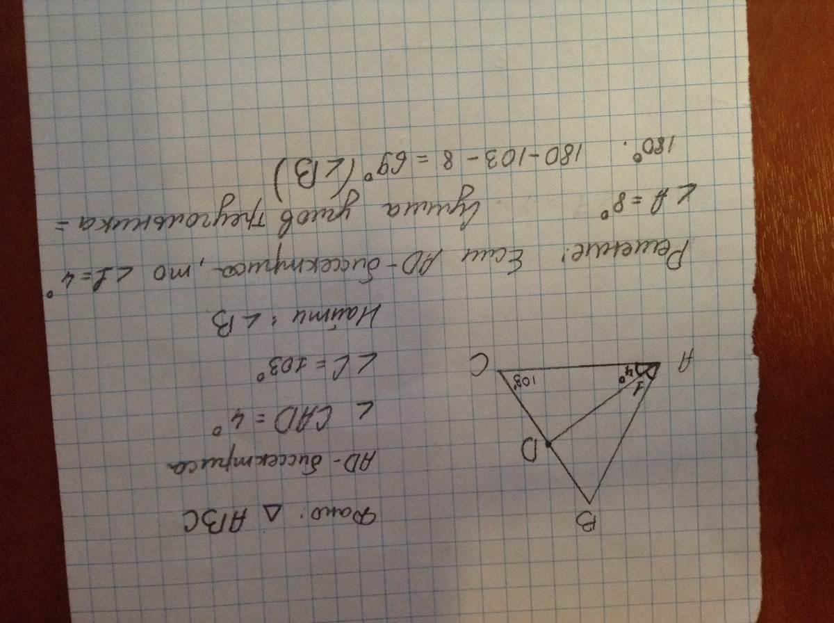 В треугольнике ABC AD — биссектриса, угол C равен 103°, угол CAD равен 4°. Найдите угол B.Ответ дайте в градусах.