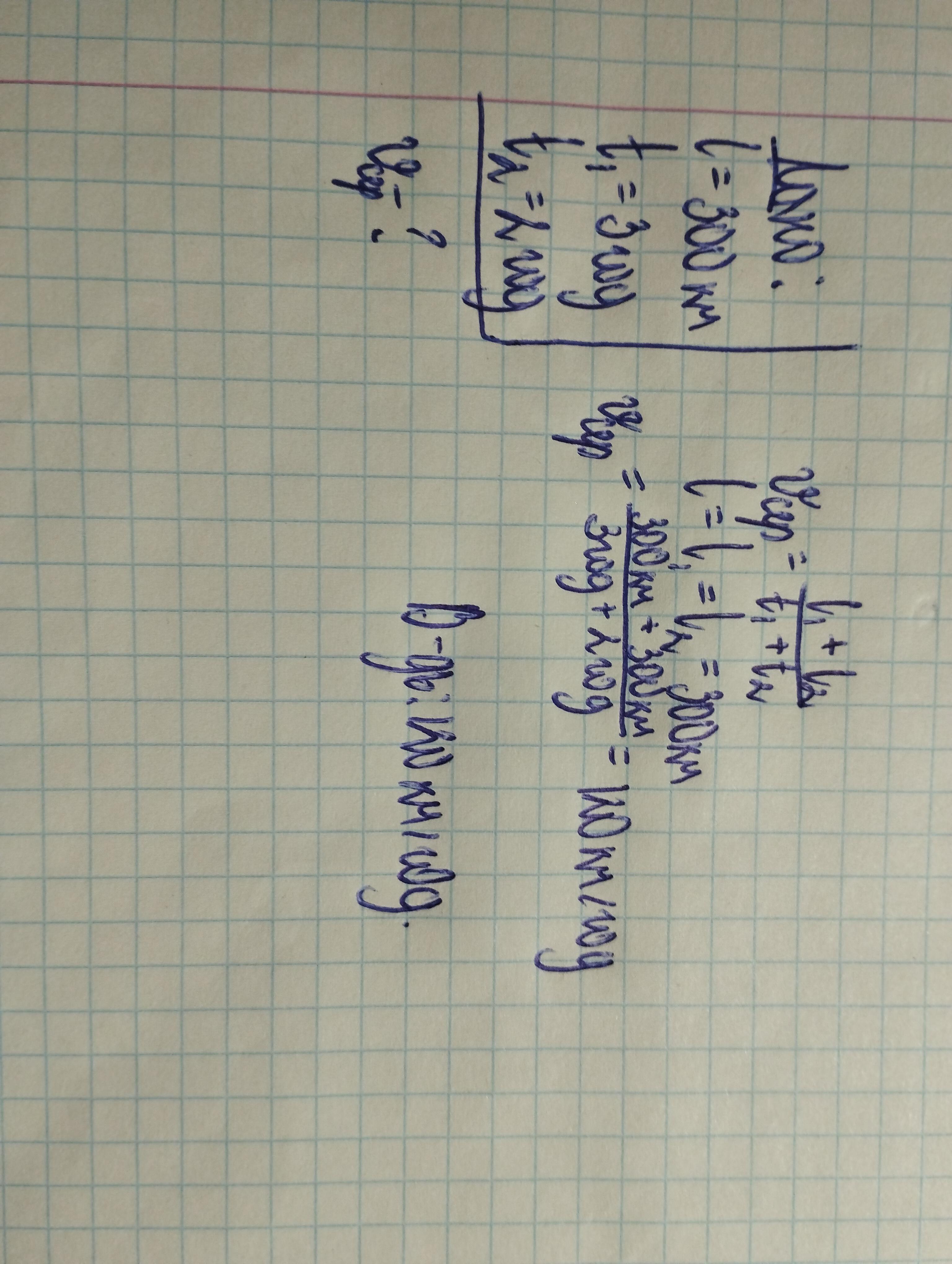 2. Автомобиль первую половину пути длиной в 300 км проехал за 3 часа, а остальную часть - за 2 часа. Вычислите среднюю скорость автомобиля на всей пути.