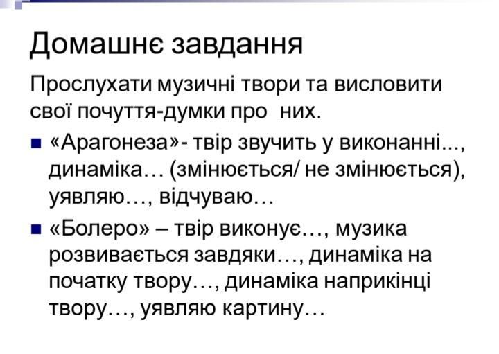 1. Твір "Арагонеза" звучить у виконанні... (вкажіть виконавця або оркестр), динаміка цього твору змінюється від початку до кінця, створюючи різні настрої. Уявляю себе в іспанському містечку, де грає весела музика, але інколи вона може ставати сумною або навіть таємничою. Відчуваю палітру емоцій, які передає ця музика - радість, туга, інтрига.