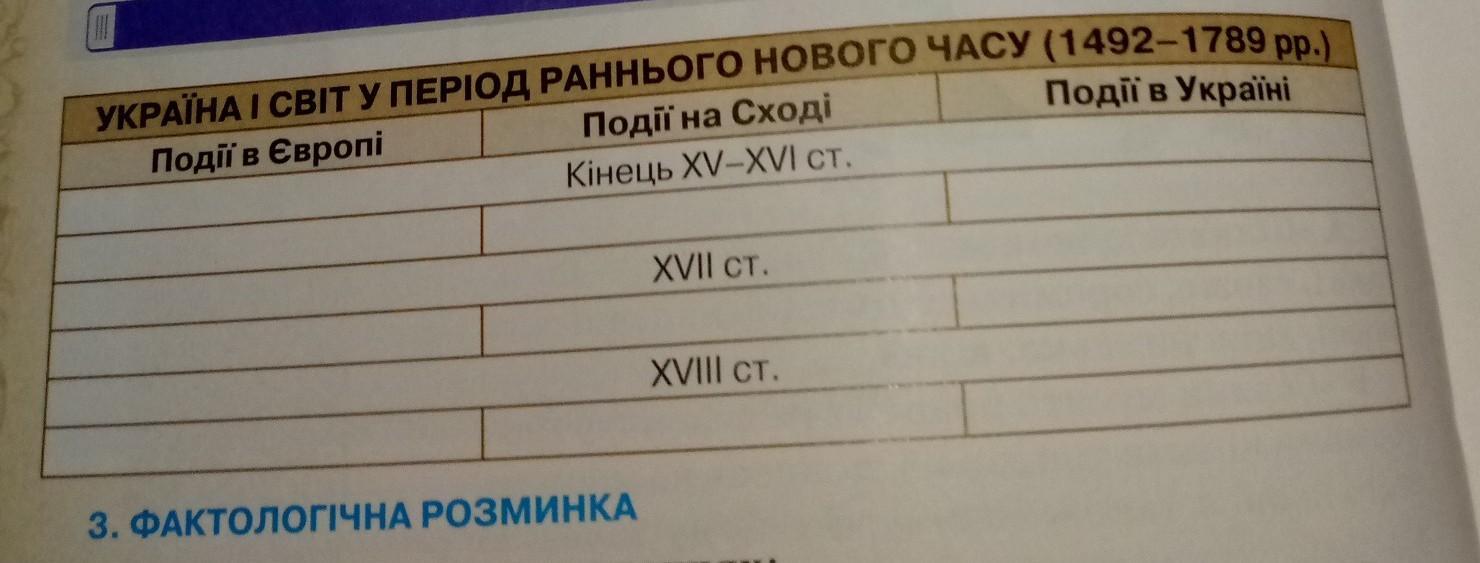 У період раннього Нового часу (1492-1789 рр.) в історії України, Європи і Сходу відбулося багато важливих подій: