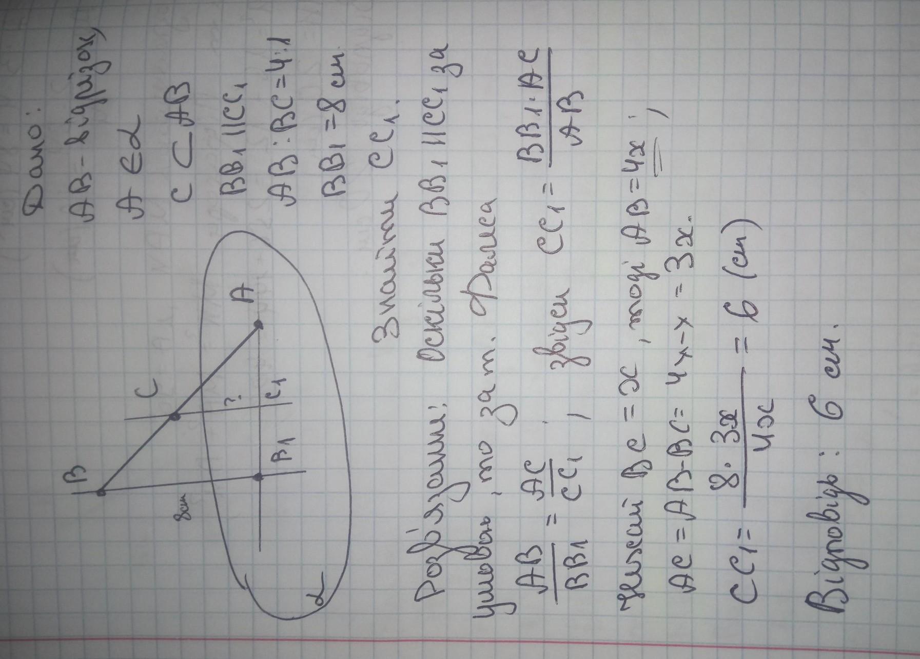 Найти СС1, если АС:СВ=3:2, ВВ1=32 дм.