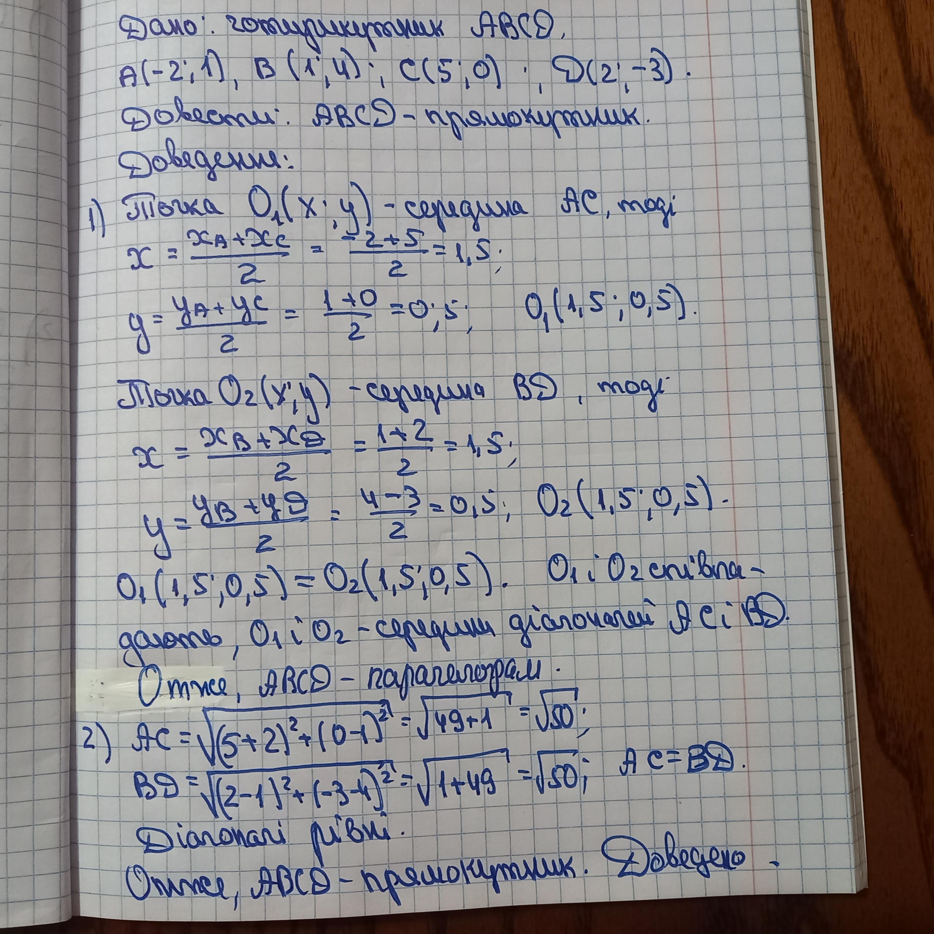 Доведи, що чотирикутник ABCD з вершинами в точках